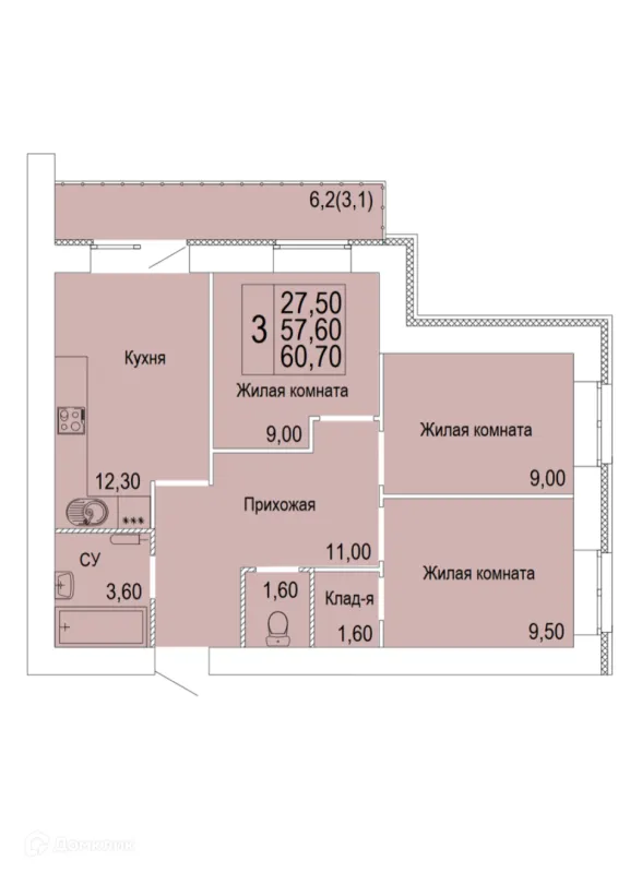 3 комн. квартира в Кирове в ипотеку от 65 597 руб/месяц